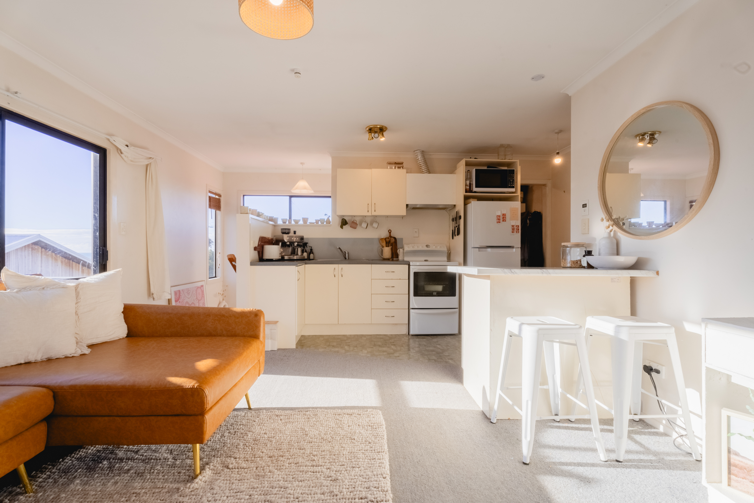 Surf check from the balcony! Super sunny, very tidy self contained one bedroom studio, ideal for single or couple, single garage, shared rear section. Owners currently use front of house which is separated from studio. Bond $1,720 and one weeks rent needed plus references, non smokers and those with no pets please need only apply thanks.